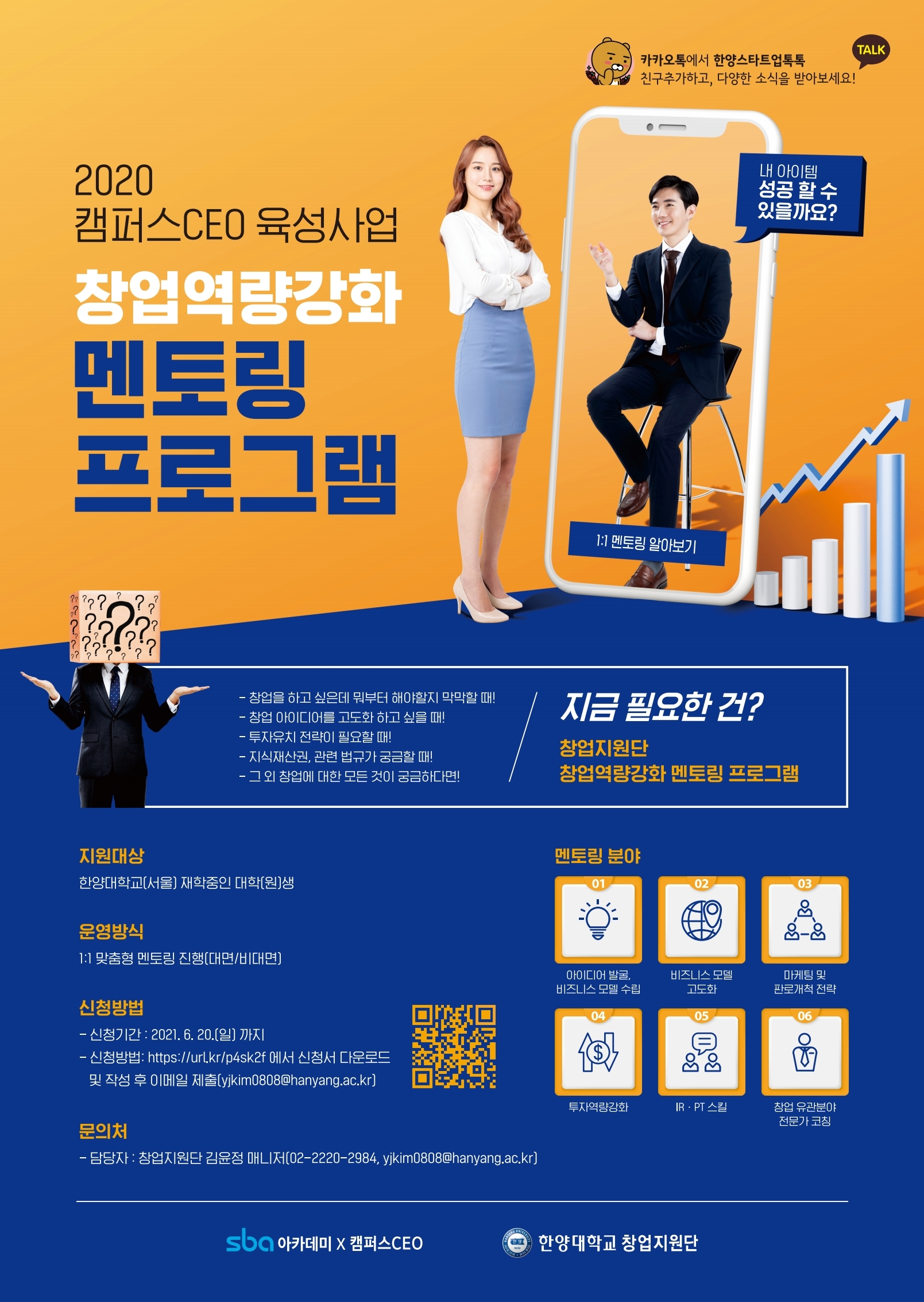 - 신청방법: 첨부되어 있는 멘토링신청서 작성 후 메일로 제출(yjkim0808@hanyang.ac.kr)