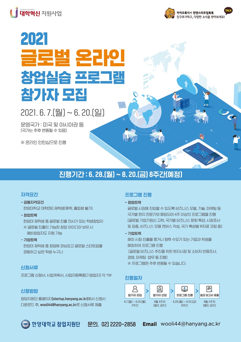 한양대학교 창업지원단에서는 2021년 글로벌 온라인 창업실습 프로그램 진행으로