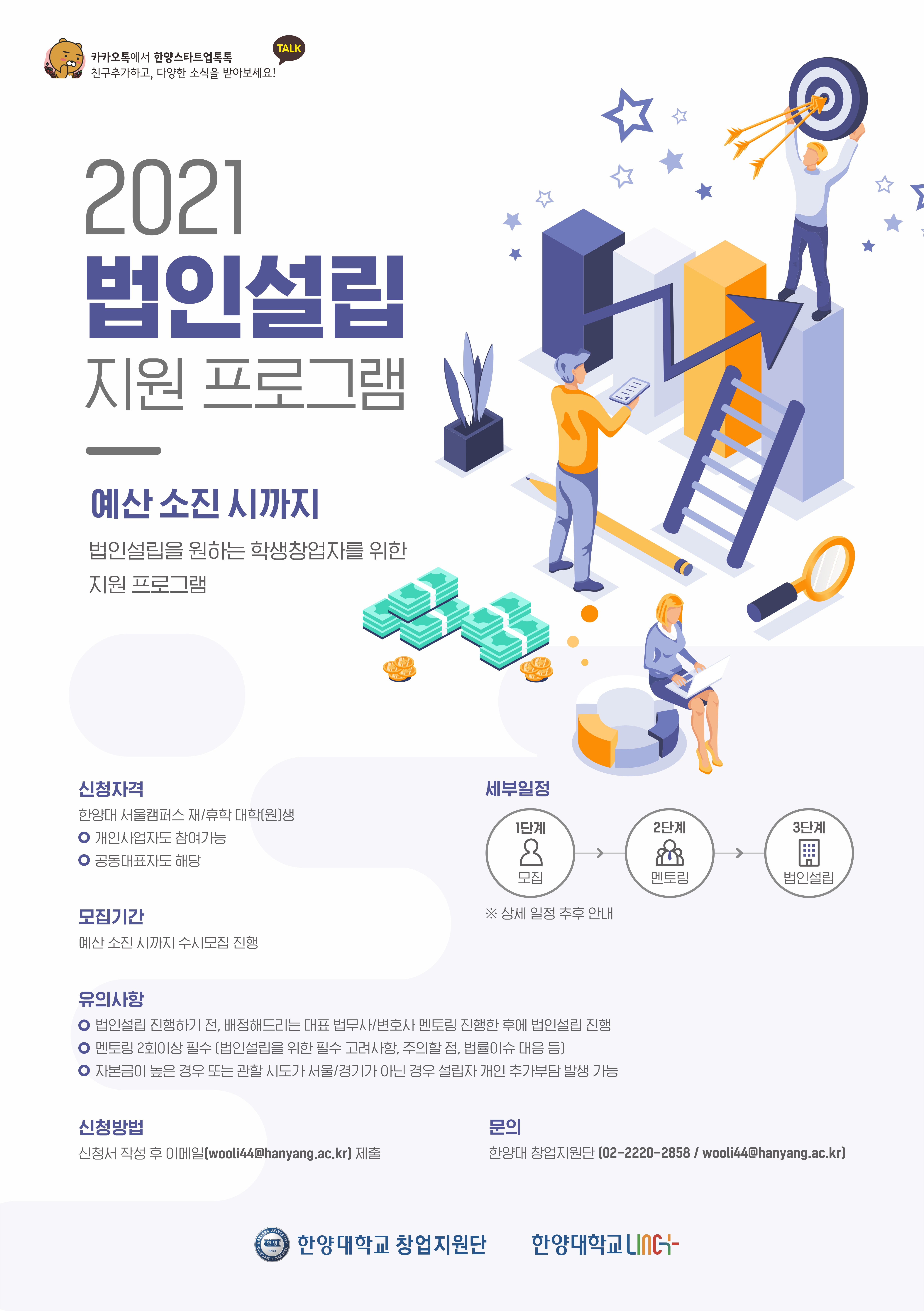 ■ 문의: 한양대 창업지원단 (02-2220-2858 / wooli44@hanyang.ac.kr)