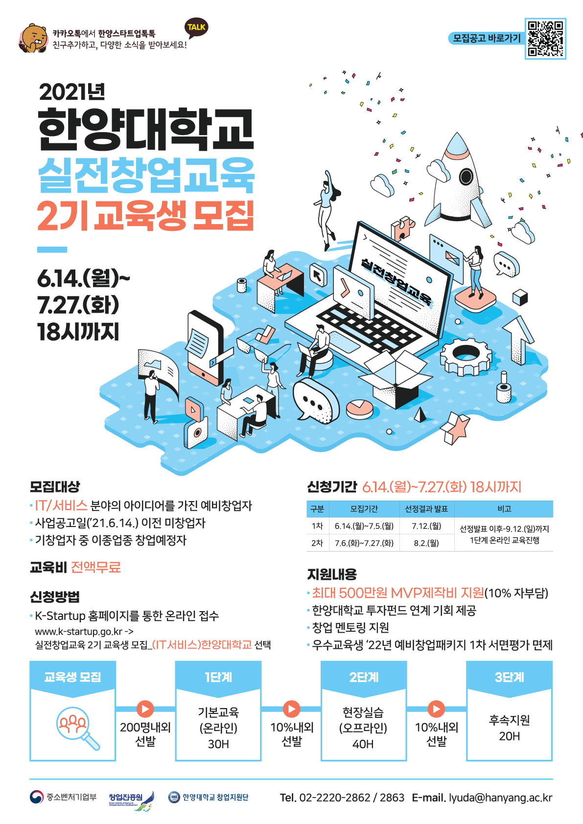 1806한양대학교 창업지원단에서는 『2021년 실전창업교육 2기 』 에 참여할 예비창업자를 다음과 같이 모집합니다.