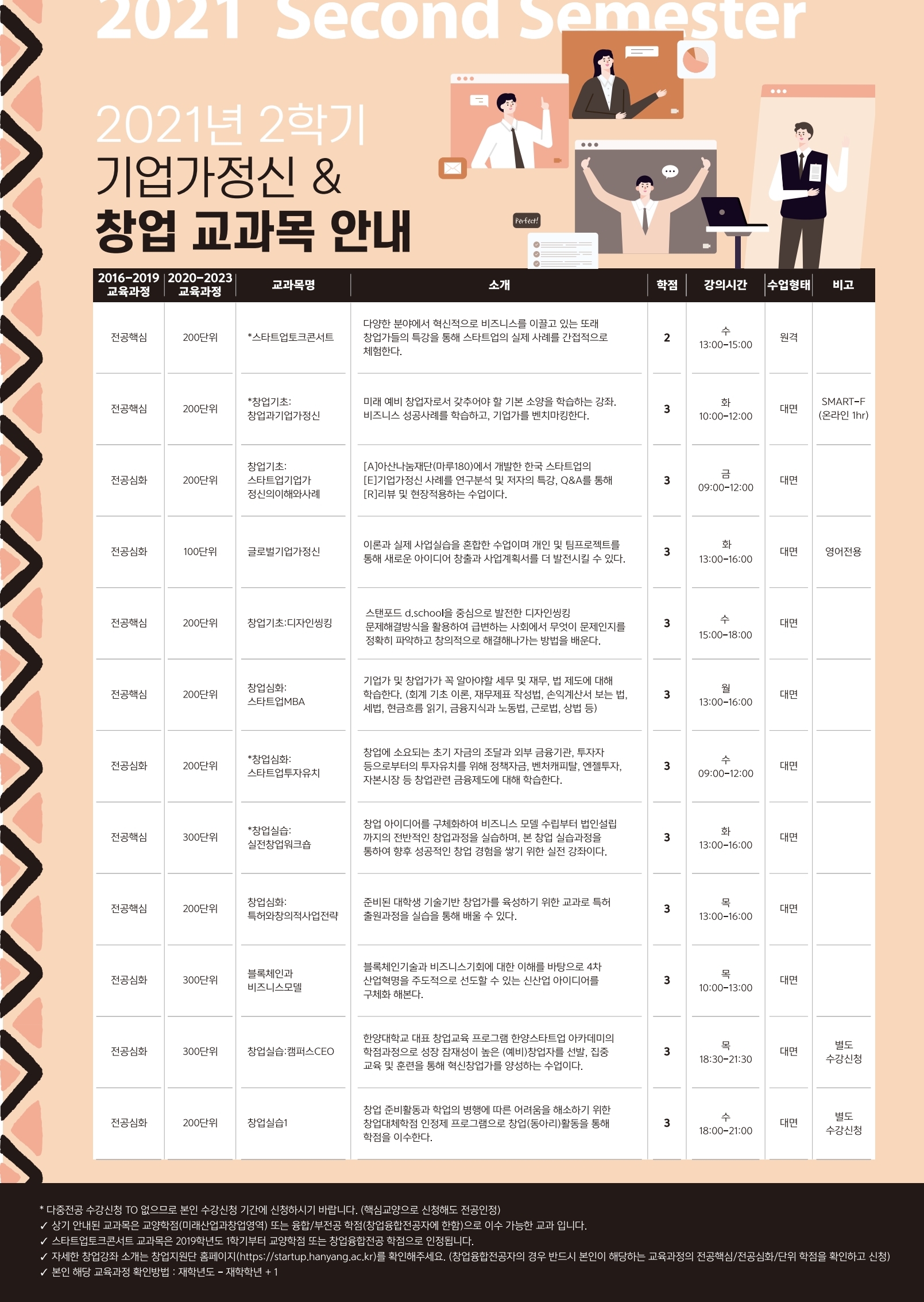 2. 창업융합전공자는 무조건 전공반으로 수강신청하시기 바랍니다.