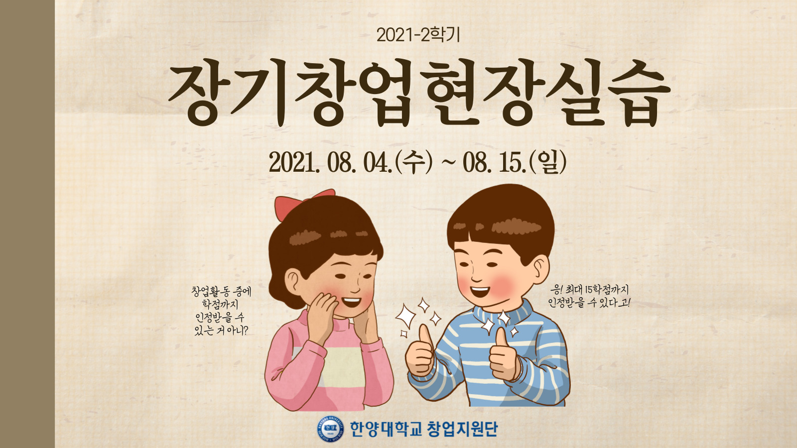 8692020학년도 1학기 '장기 창업현장실습' 학점인정 프로그램을 안내하오니 현장실습에 참가하기 원하는 학생은 기한 내에