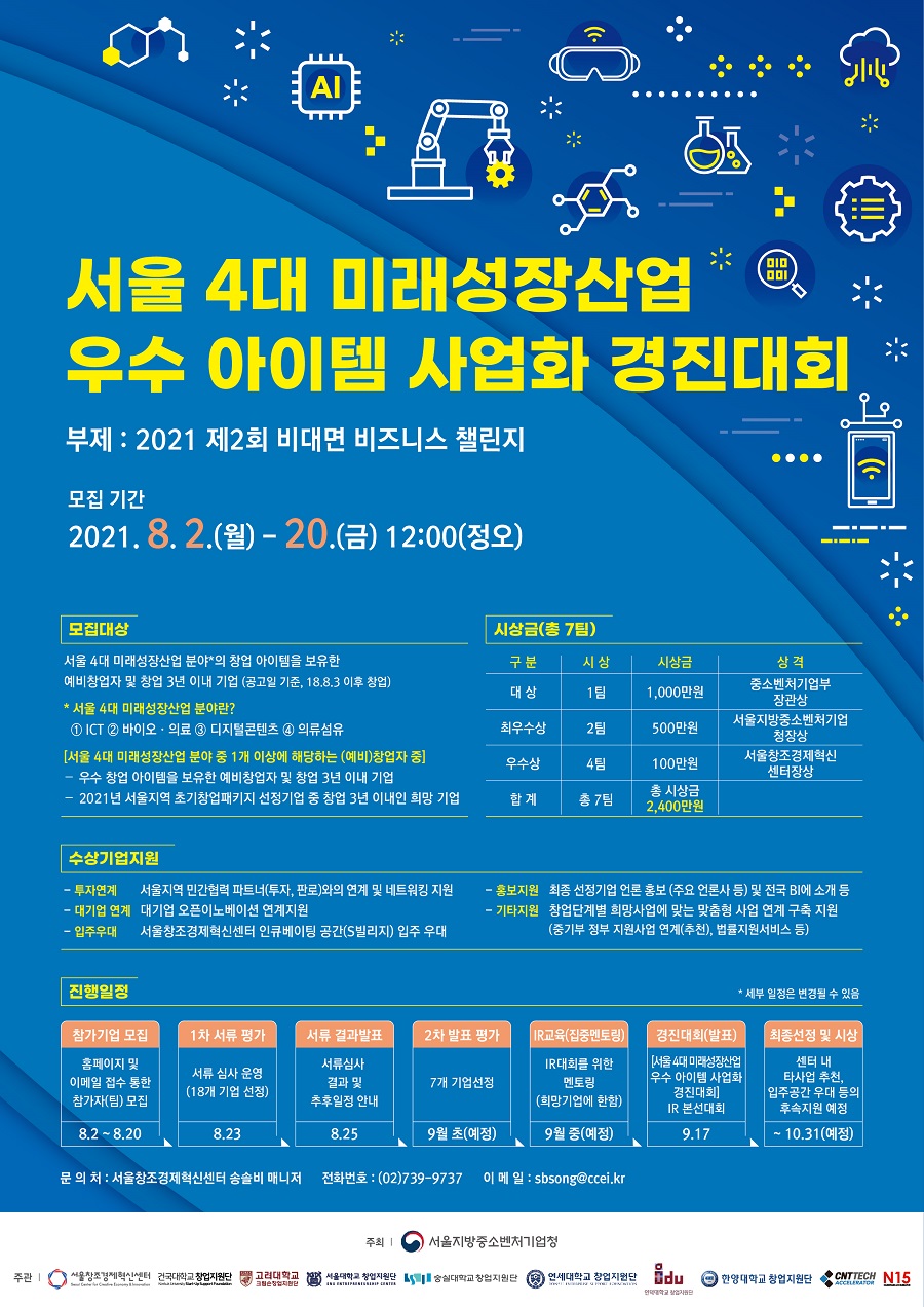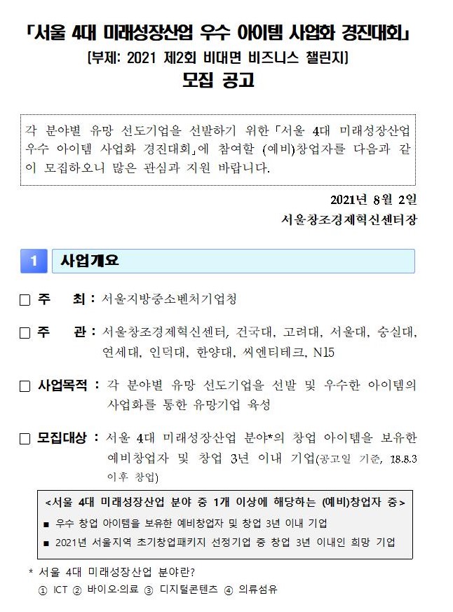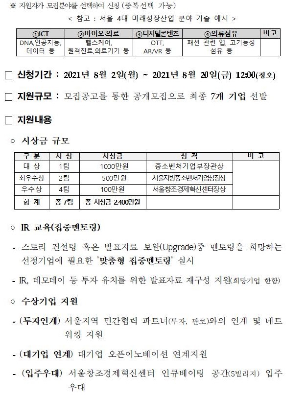 서울 4대 미래성장산업 우수 아이템 사업화 경진대회(~8.20)