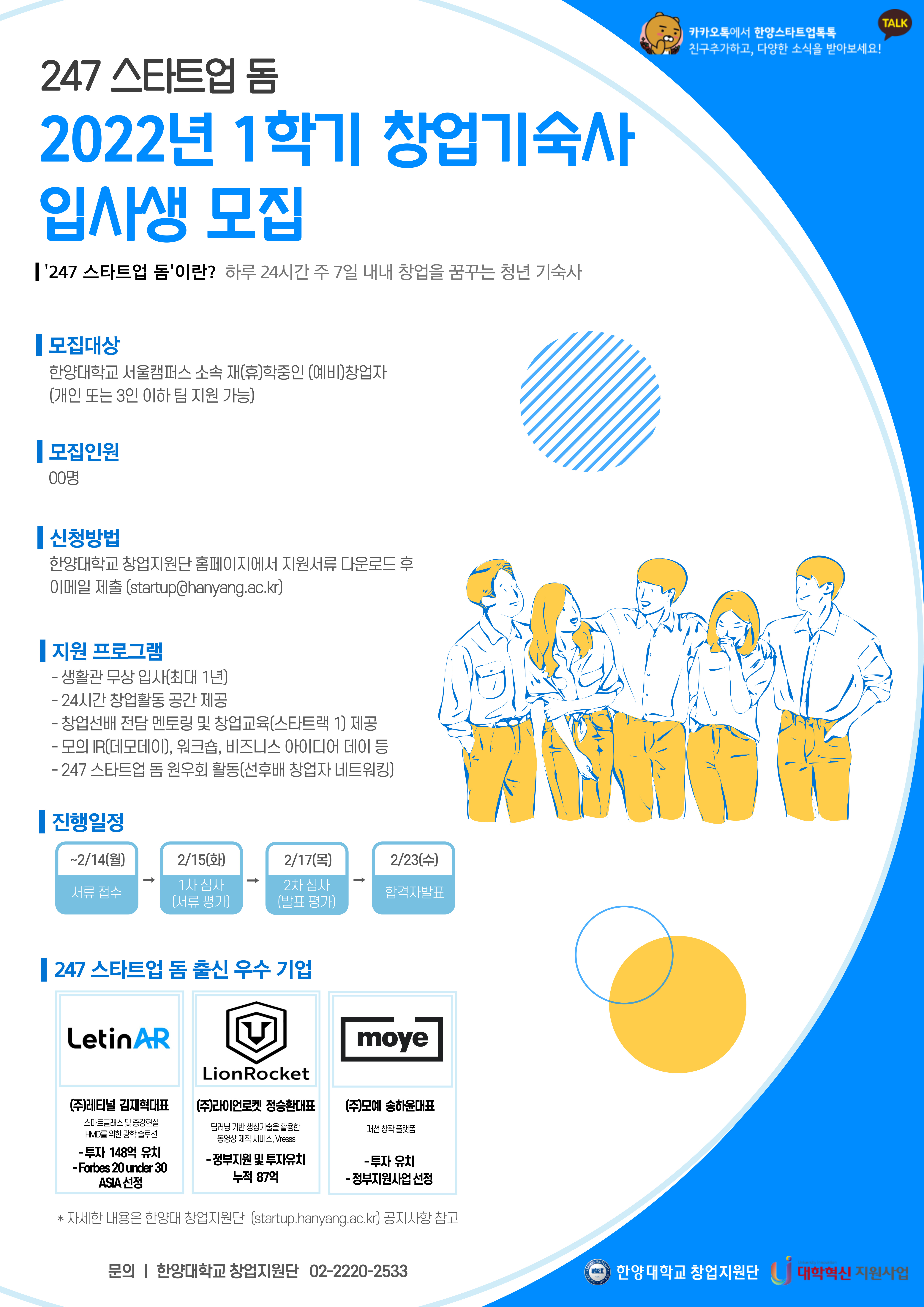 붙임 2022년 1학기 247 스타트업돔 입사생 모집 공고문 및 입사 신청서 1부.
