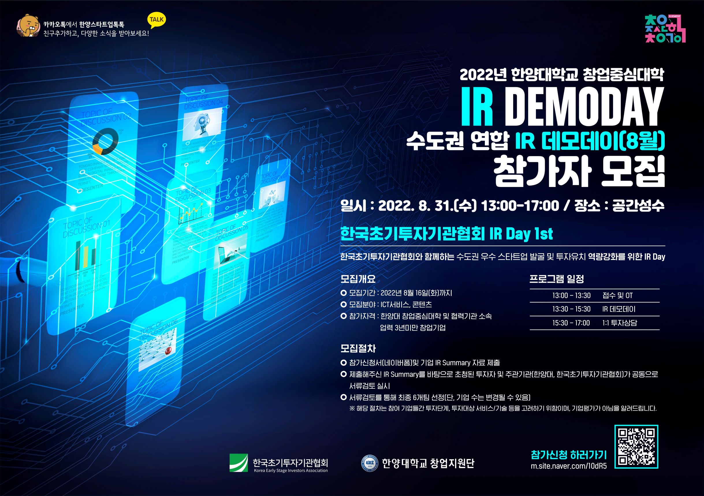◦ 프로그램명: 수도권 연합 IR 데모데이 <2022 수도권 창업중심대학 IR데모데이>