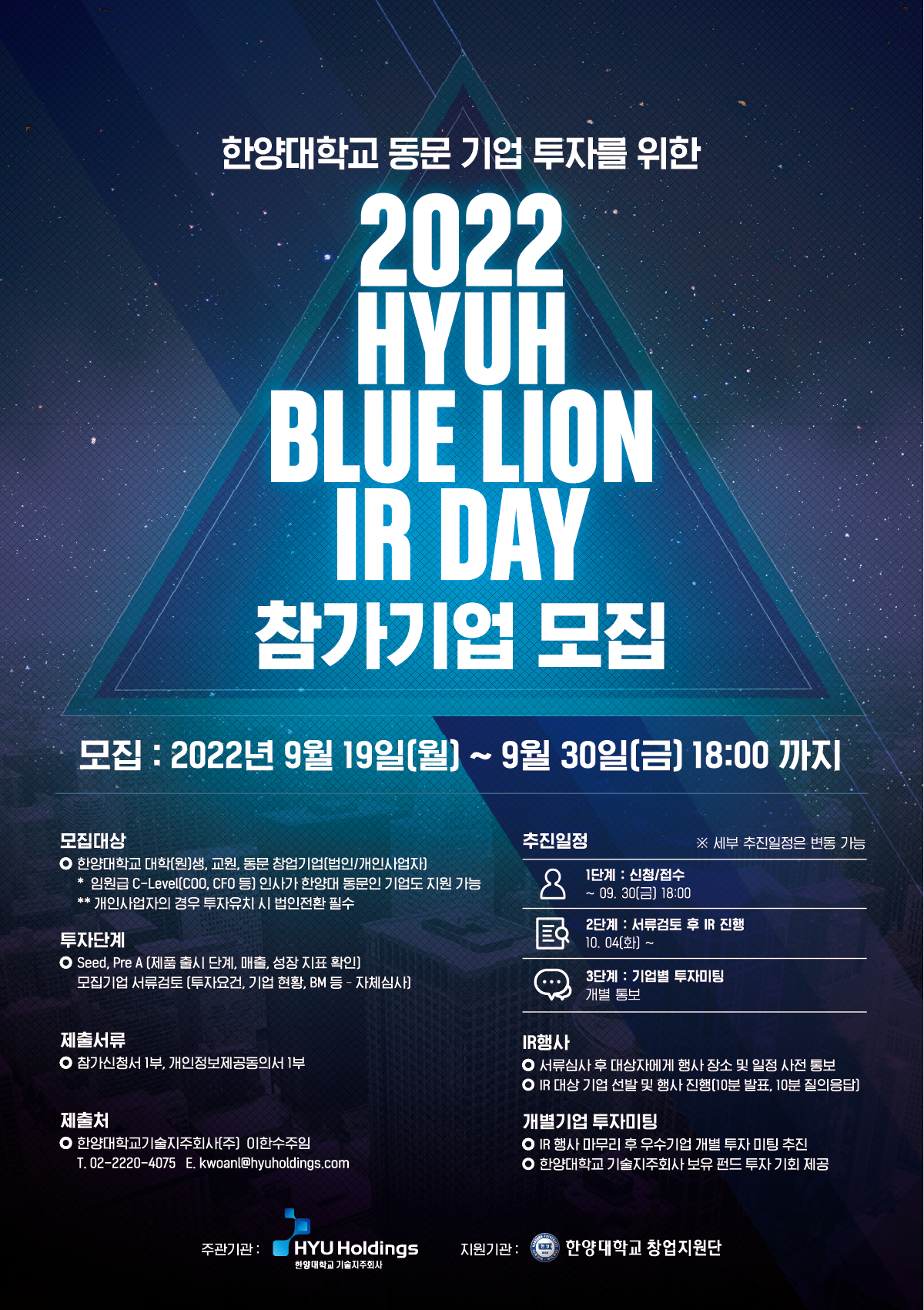 5392022 한양대학교 기술지주회사 BLUE LION IR DAY 참가기업 모집