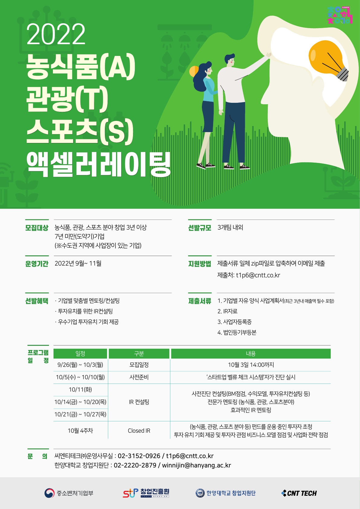 한양대학교 창업지원단 염혜진매니저 (02-2220-2879 / winnijin@hanyang.ac.kr)