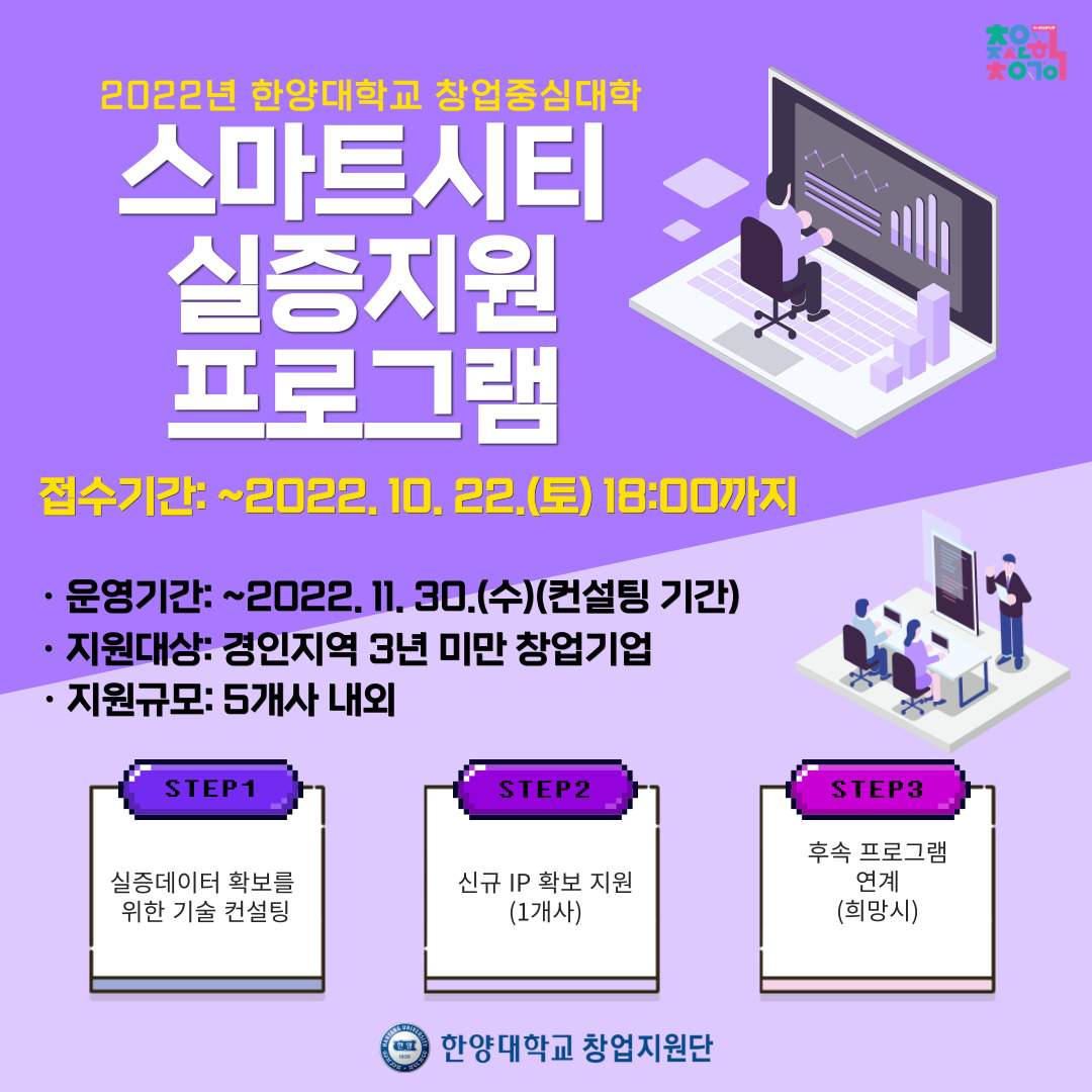 한양대학교와 인천대학교가 협력하여 창업기업의 제품·서비스의 기술개발과 시장출시를 촉진시키기 위한 사용자 현장 중심의 실증(Test-bed) 지원 프로그램을 준비하였습니다.