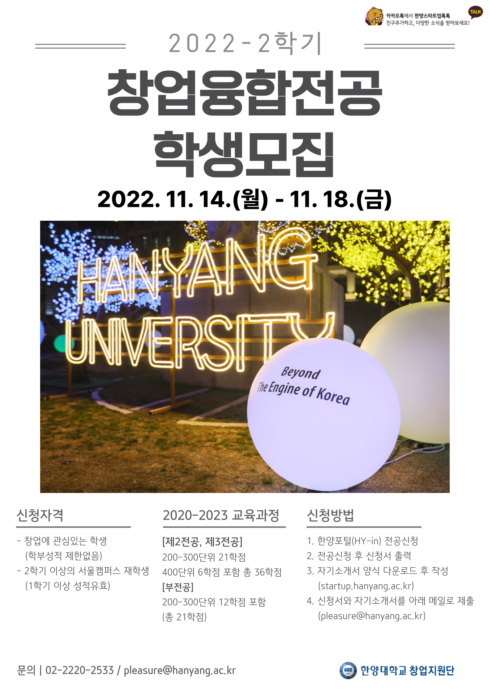 문의: 02-2220-2533 / pleasure@hanyang.ac.kr