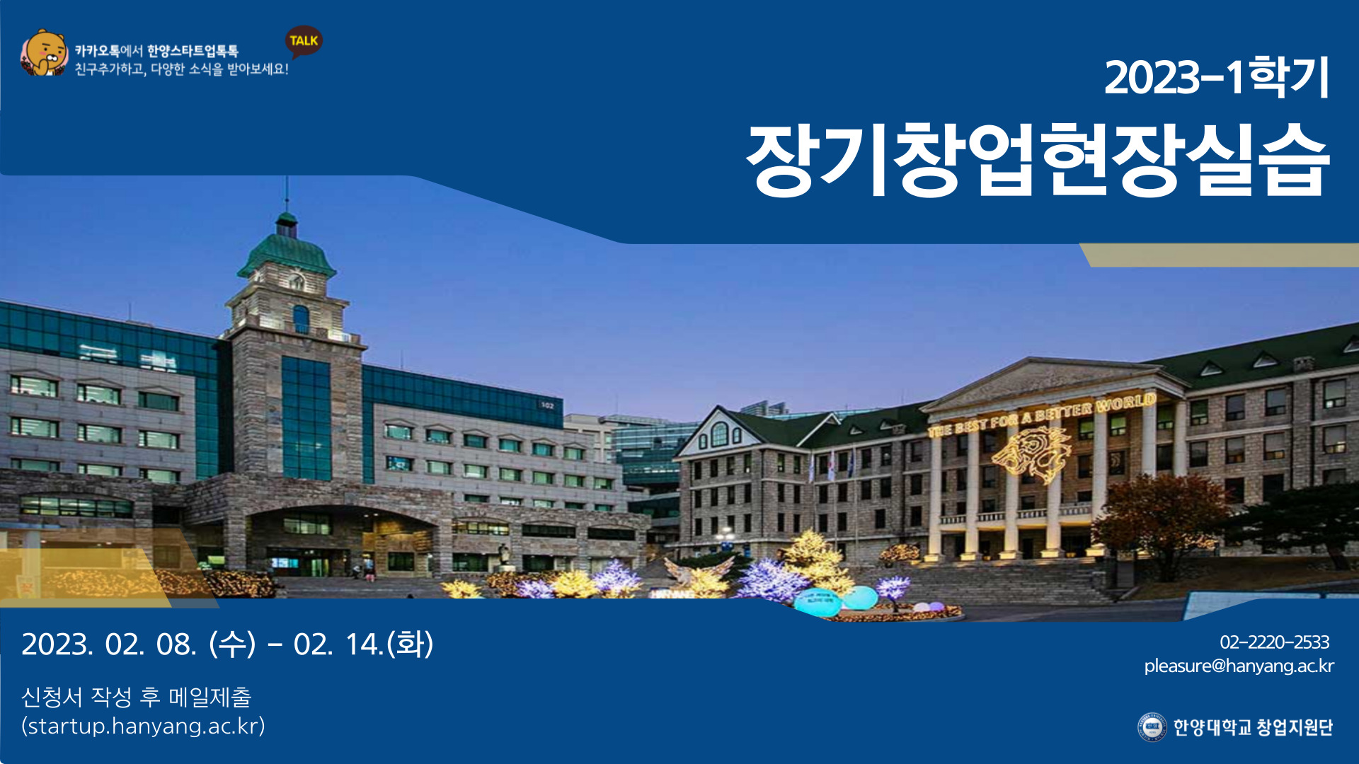 (제출처: pleasure@hanyang.ac.kr / 문의: 02-2220-2533) / 메일제목: 2023학년도 1학기 장기창업현장실습 신청서_창업기업명_이름