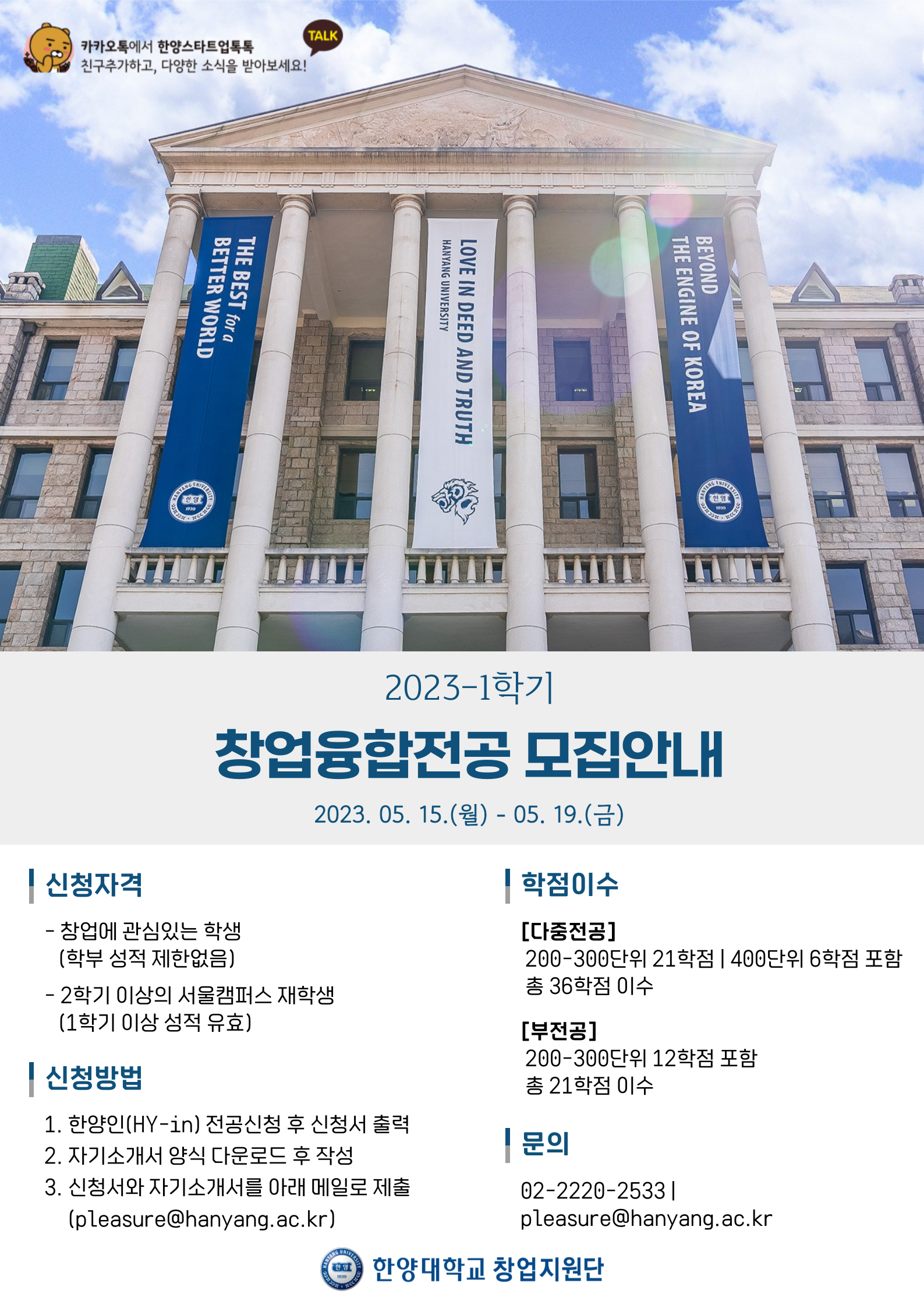문의: 02-2220-2533 / pleasure@hanyang.ac.kr