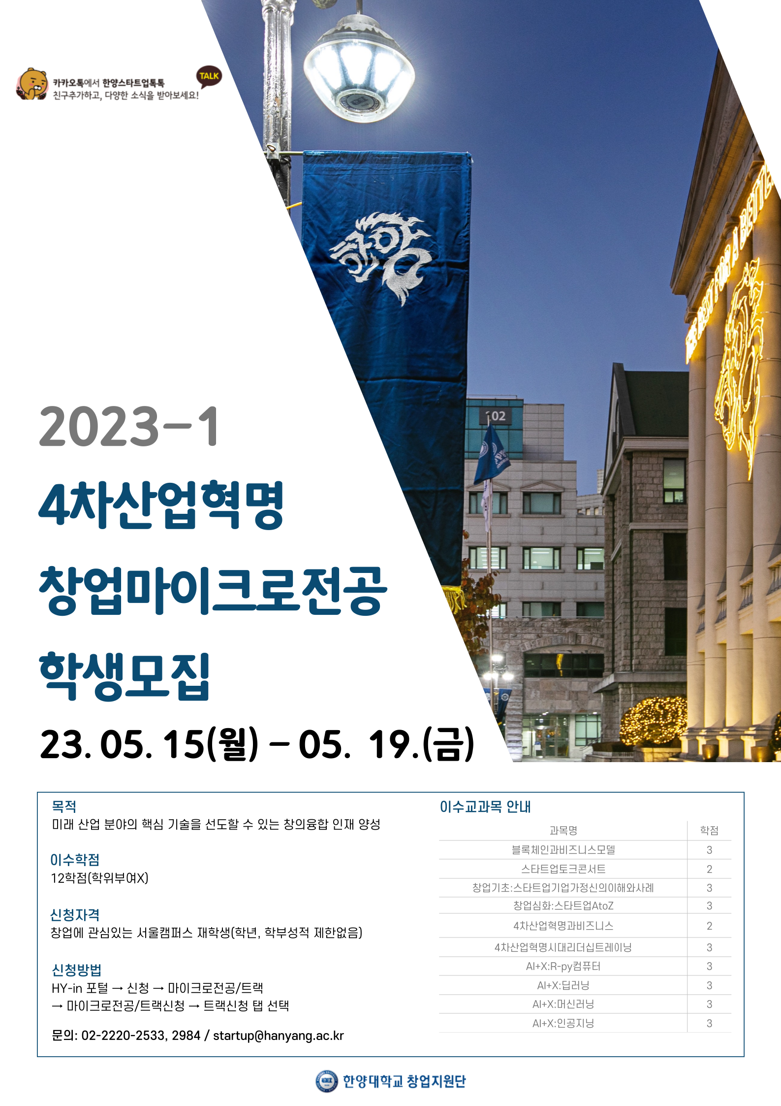 ㅇ 전공명: 4차산업혁명창업 마이크로전공