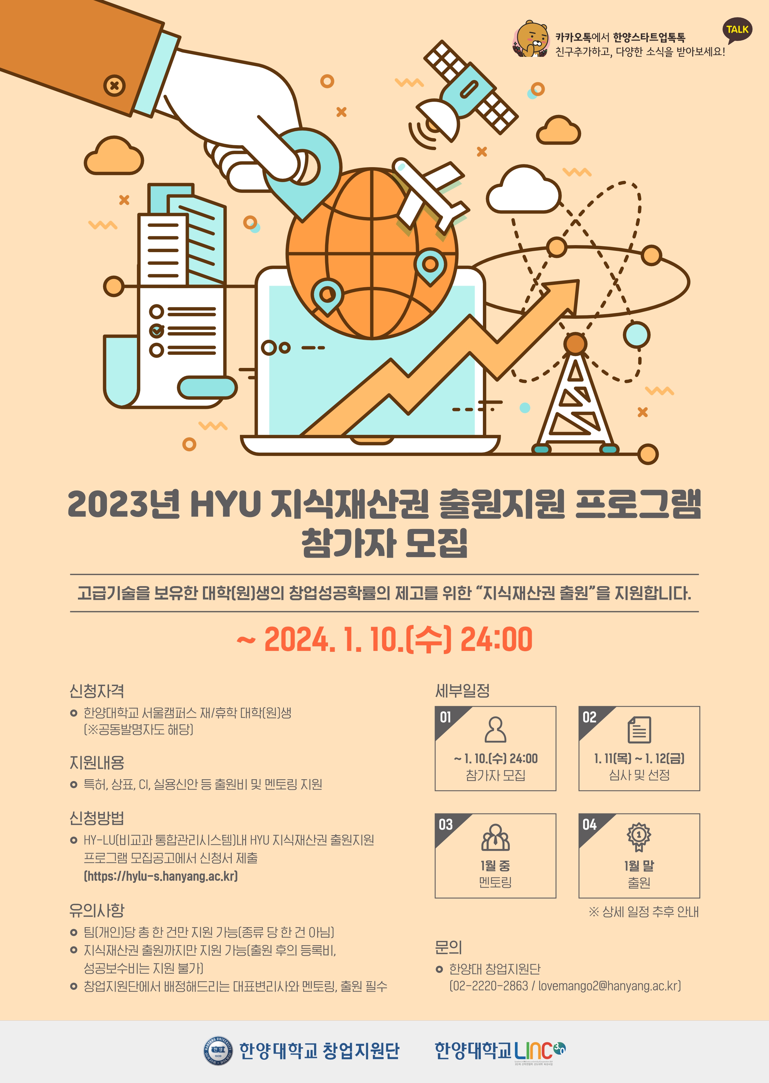 2023년 HYU 지식재산권 출원지원 프로그램(2기) 참가자 모집