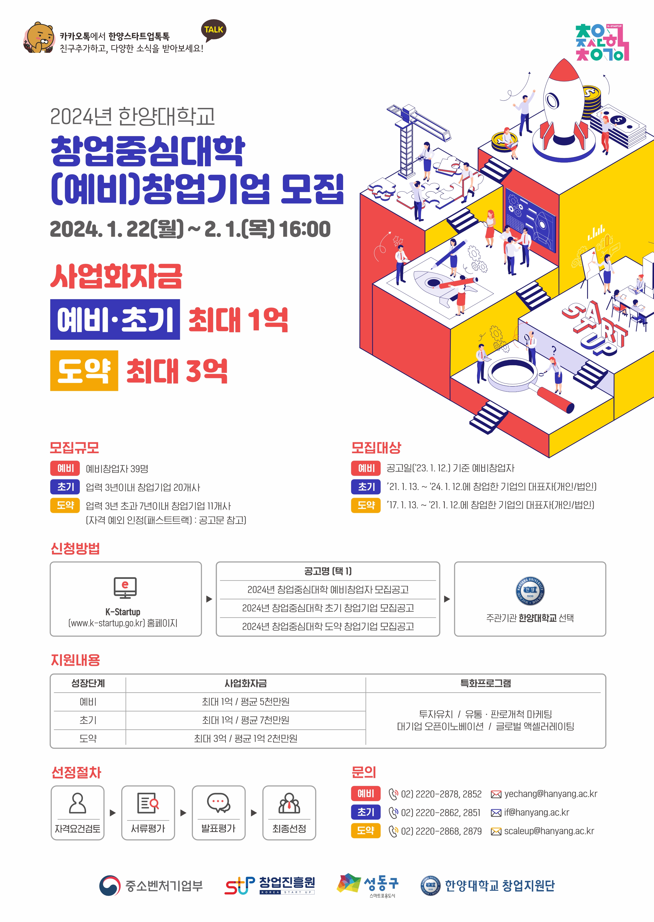 2024년 한양대학교 창업중심대학 (예비,초기, 도약) 창업기업 모집(1.22~2.1)