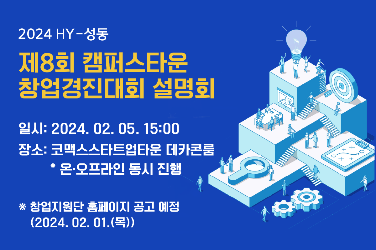 2024 제 8회 HY-성동 캠퍼스타운 창업경진대회 모집 공고 (2.1.~2.26.)2024.02.01