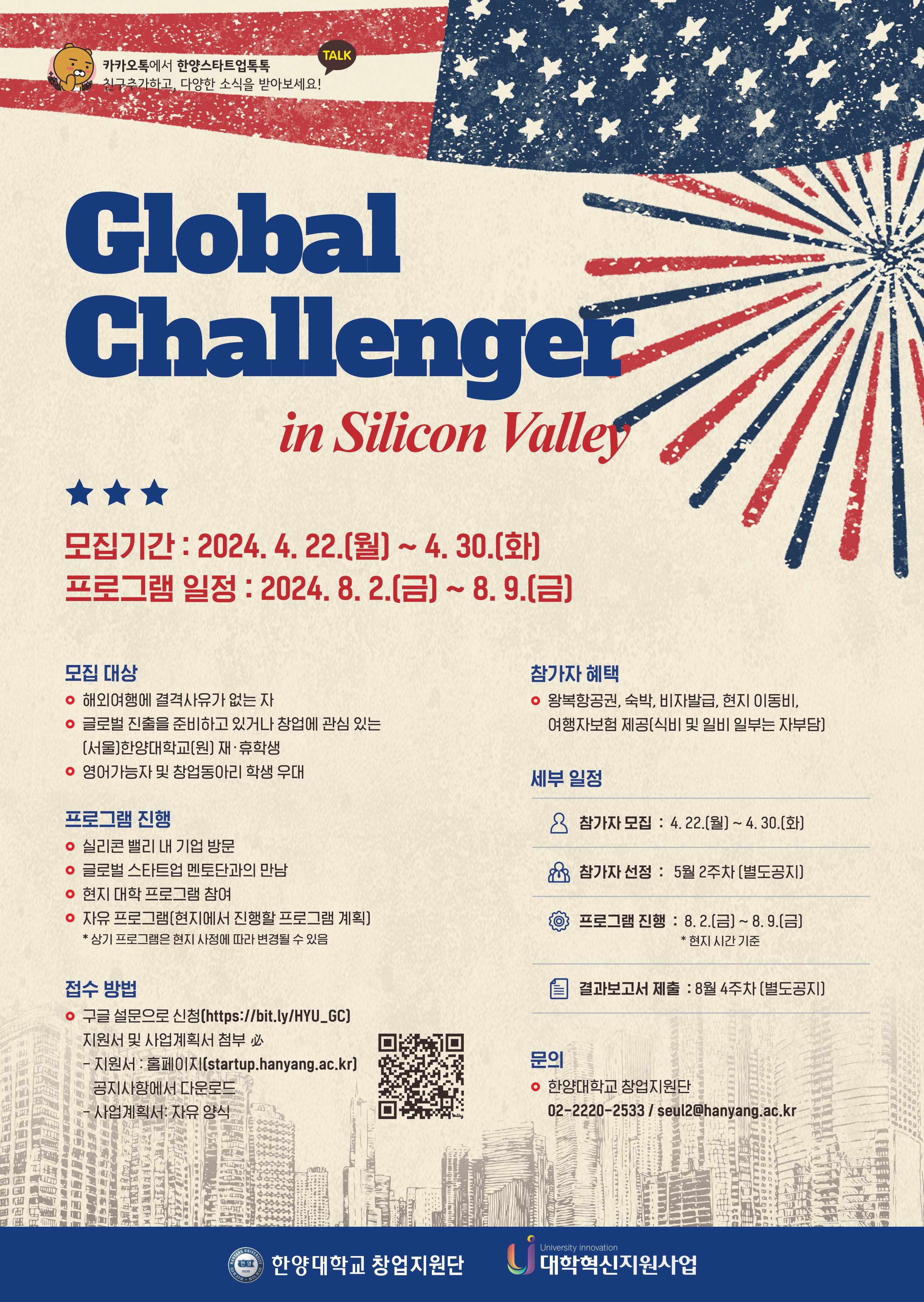 <Global Challenger in Silicon Valley 참가자 모집 안내> (~5. 8.(수)까지)