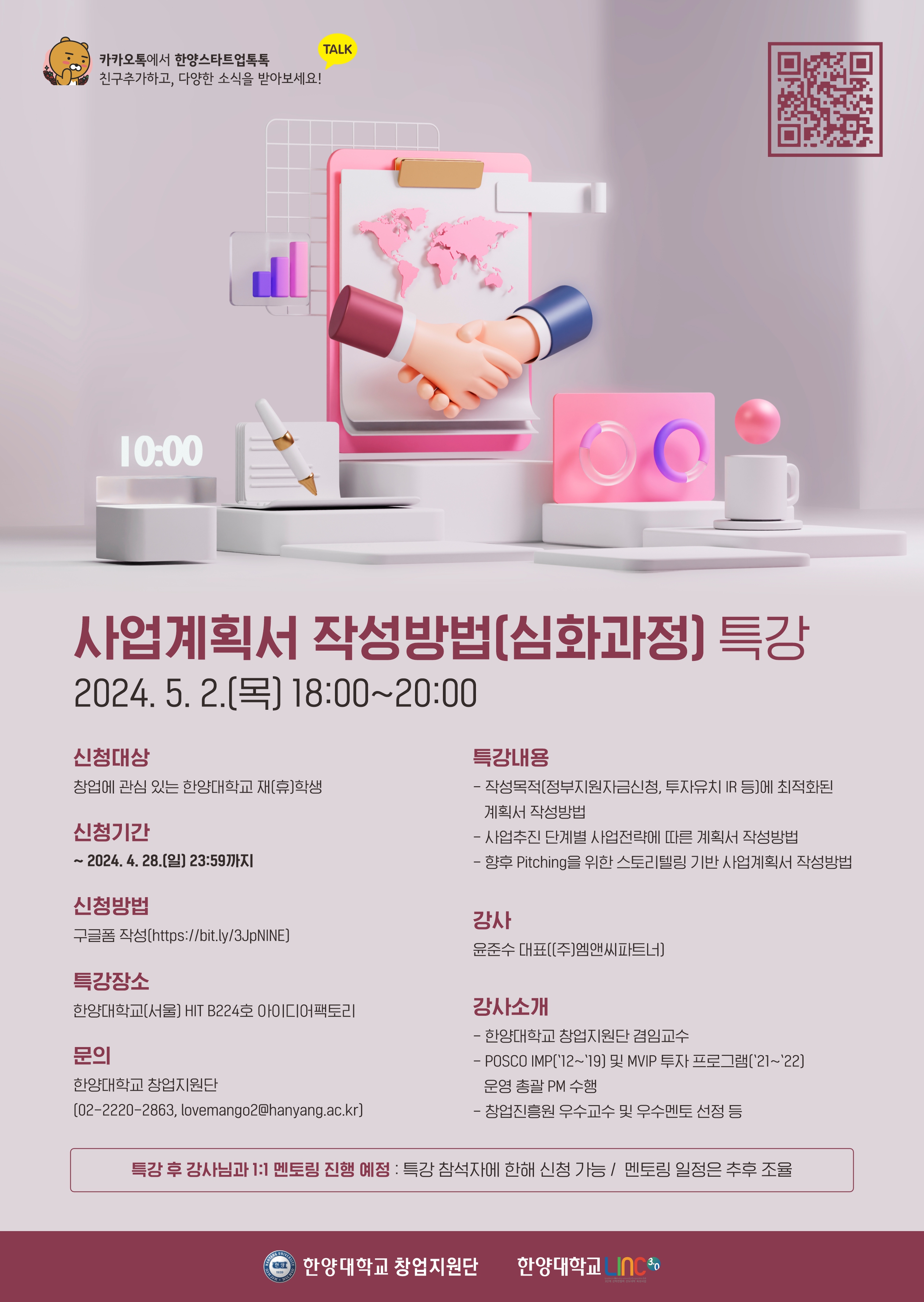 02-2220-2863 / lovemango2@hanyang.ac.kr (한양대학교 창업지원단)