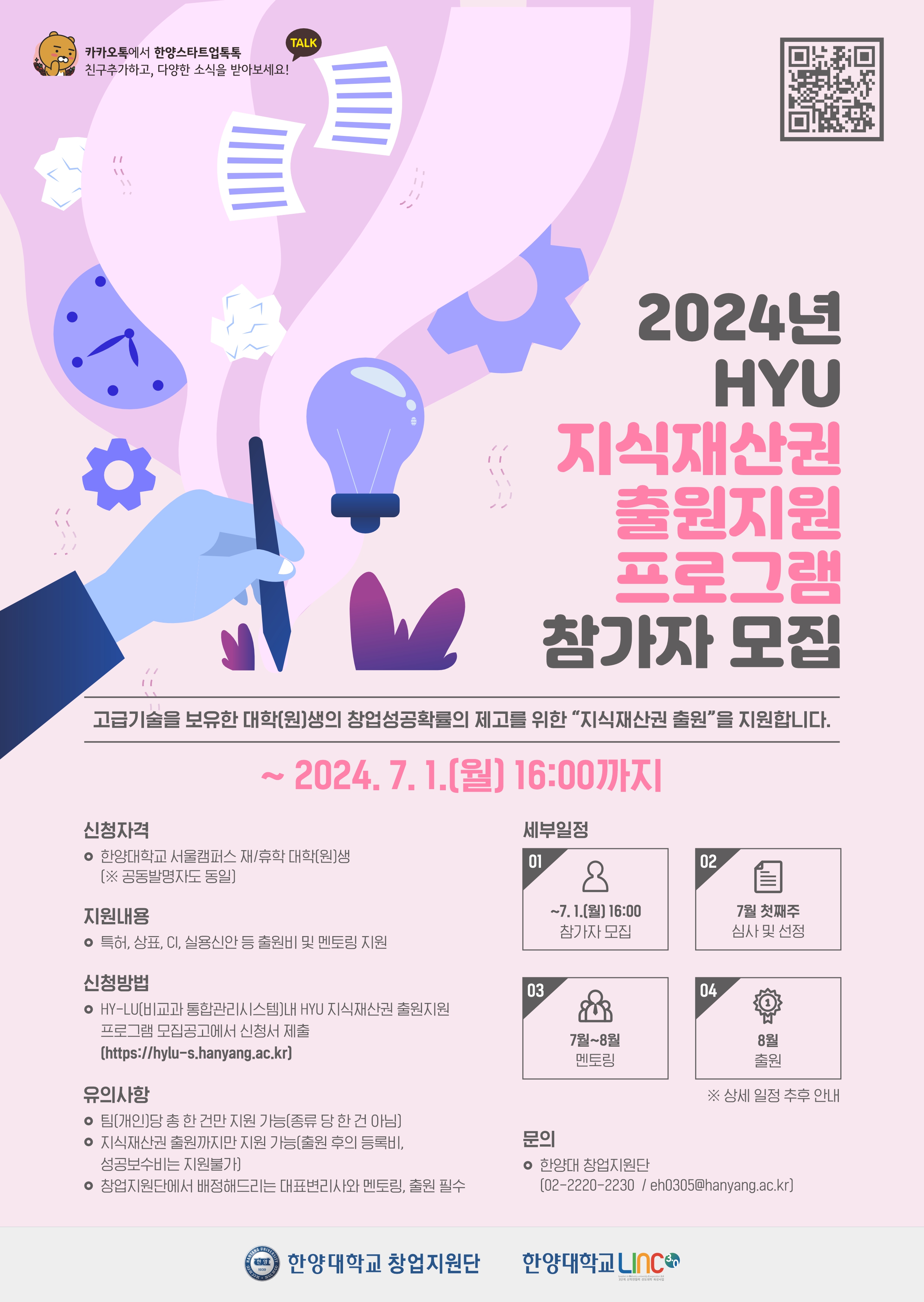 2024년 HYU 지식재산권 출원지원 프로그램 참가자 모집