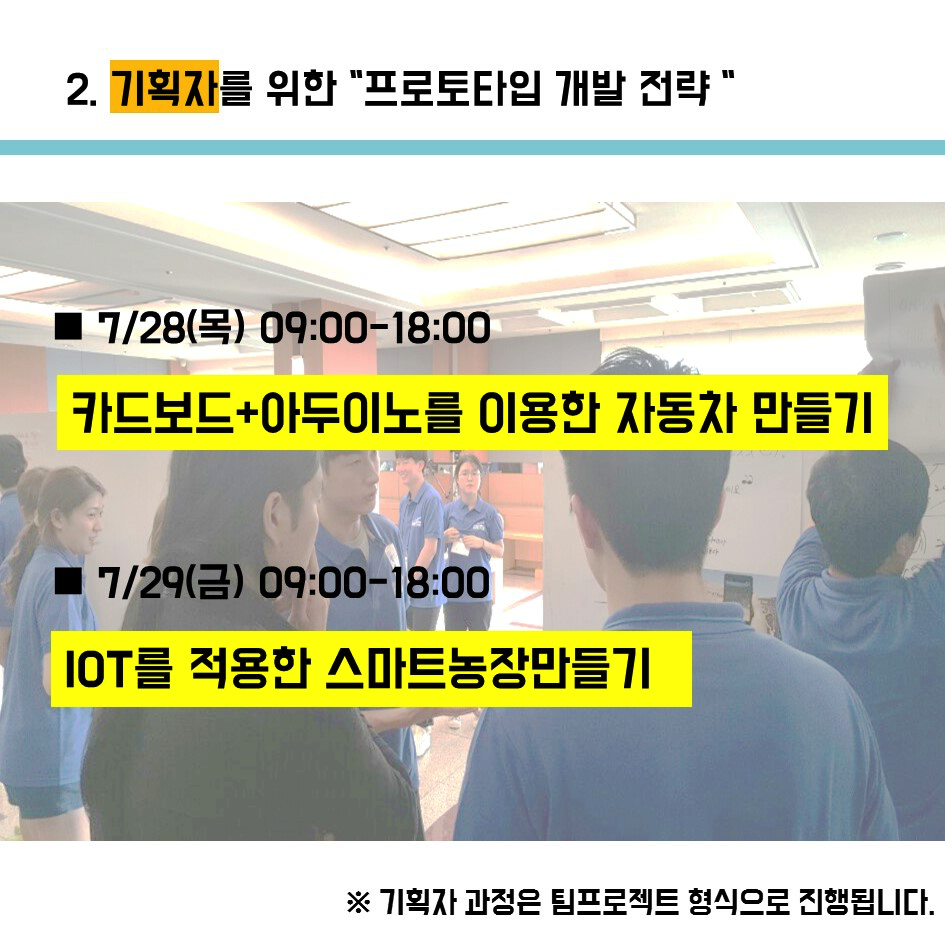 : 웨어러블, 로봇, 사물 인터넷 소프트웨어/하드웨어 개발을 위한 강의로 사업 아이디어를 구현하기 위한 기획 방법론 습득과 프로토타입 제작 진행