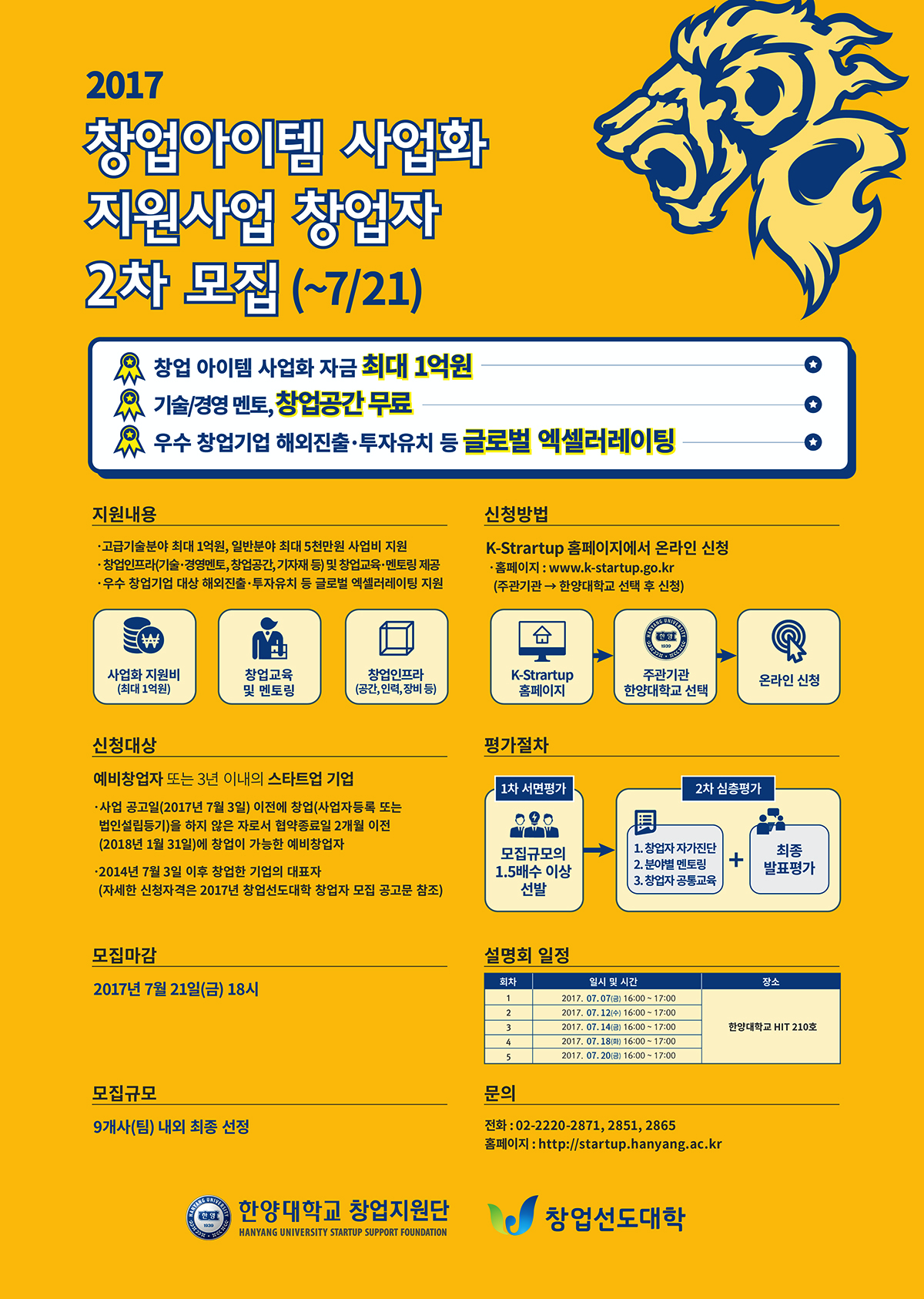 2017년 창업선도대학 창업아이템 사업화 (예비)창업자 2차 모집 공고