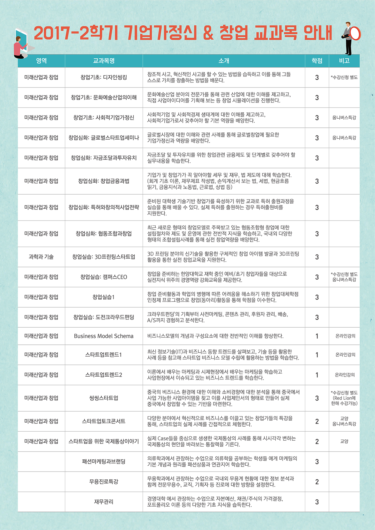2017-2학기 기업가정신&창업 교과목 안내입니다.