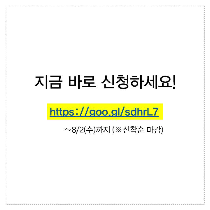 - 접수기간 : 7/23(월)~8/3(목)까지 (40명 내외)