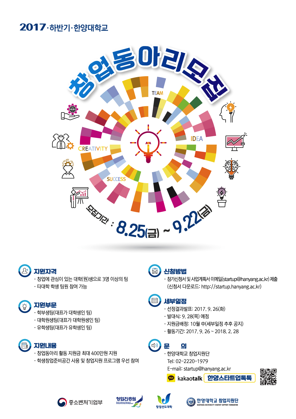 2) 파일 제목 양식: 2017하반기한양창업동아리신청서_팀명_대표명