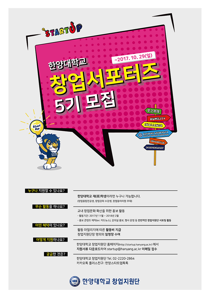 한양대학교 창업서포터즈 5기를 모집합니다.