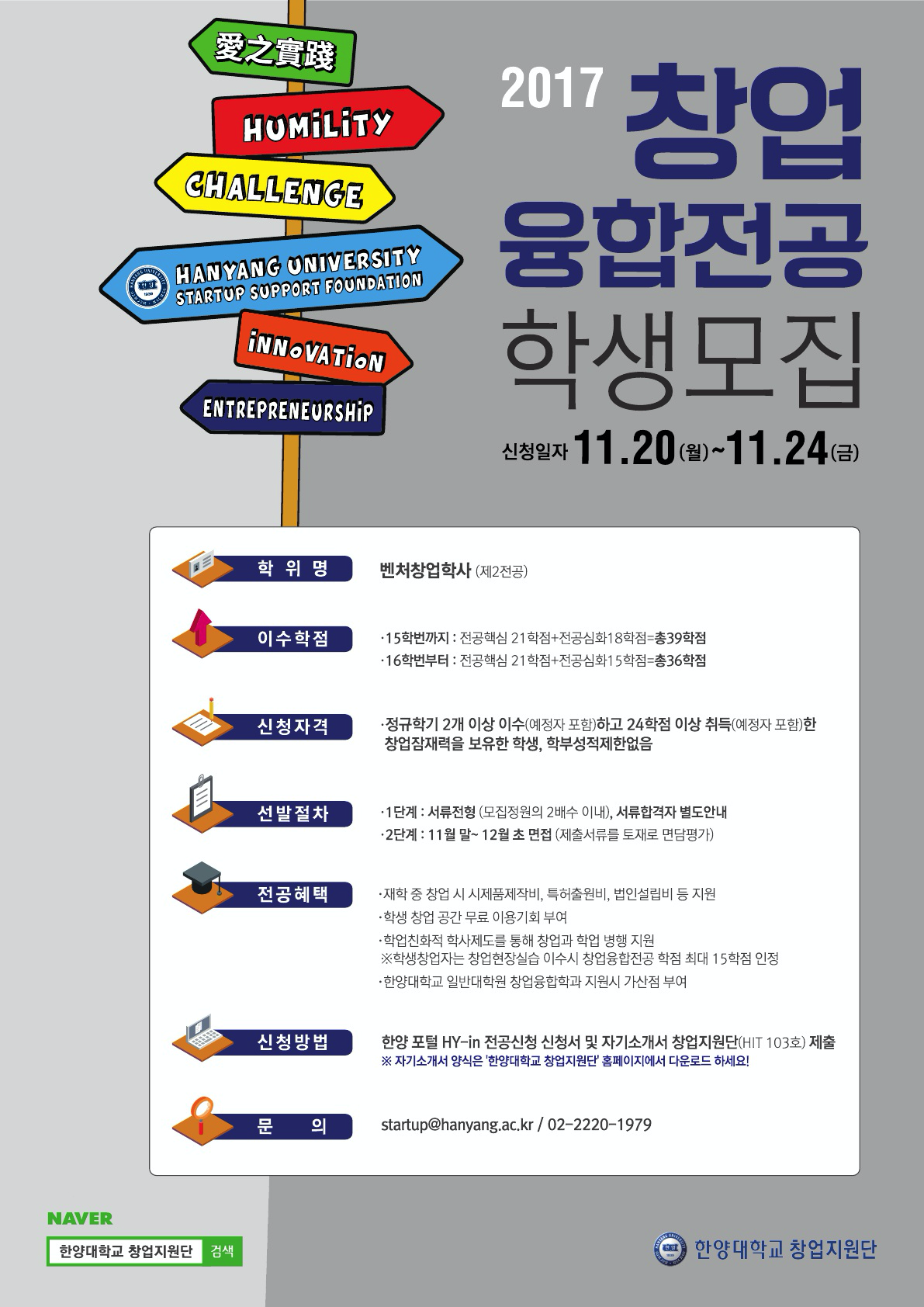 ㅇ신청방법: 한양대학교 포털에서 전공신청 선택 후 신청서 및 자기소개서를 글로벌기업가센터로 제출