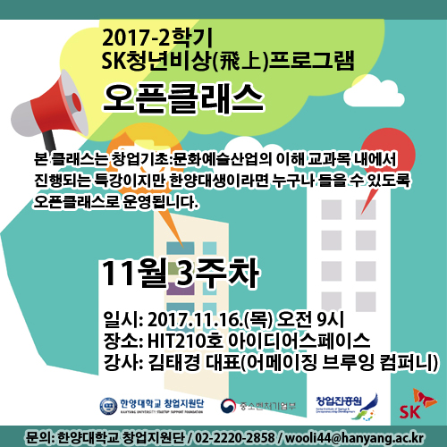 [SK 청년비상 프로그램] 11월 3주차 오픈클래스 안내