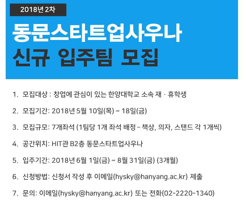 2018년 2차 동문스타트업 사우나 신규 입주동아리 모집
