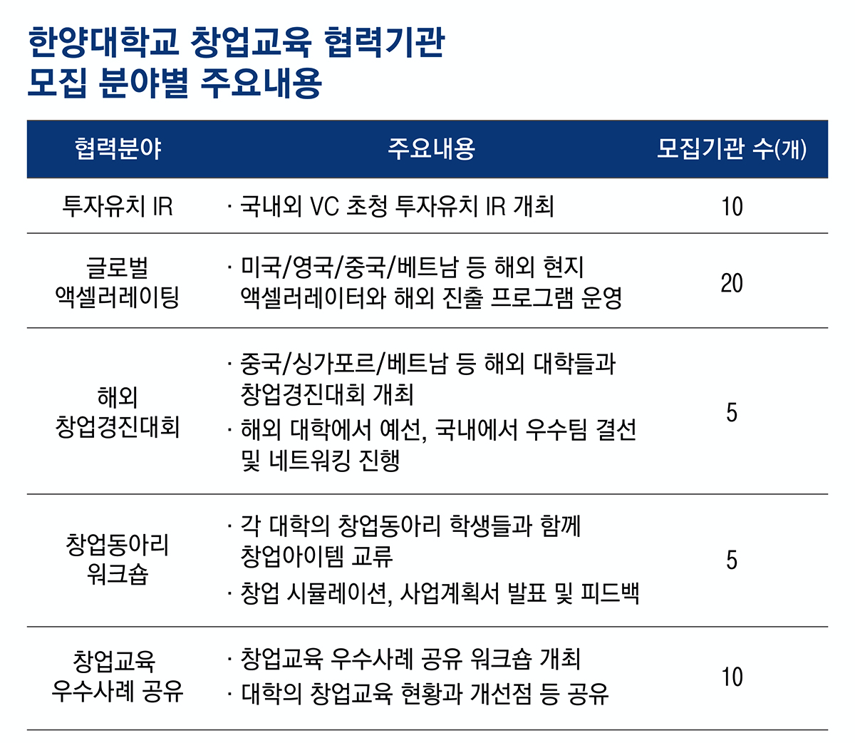 한양대학교 창업지원단에서 2019년도 창업교육 프로그램을 공동 운영할 협력기관을 모집합니다.