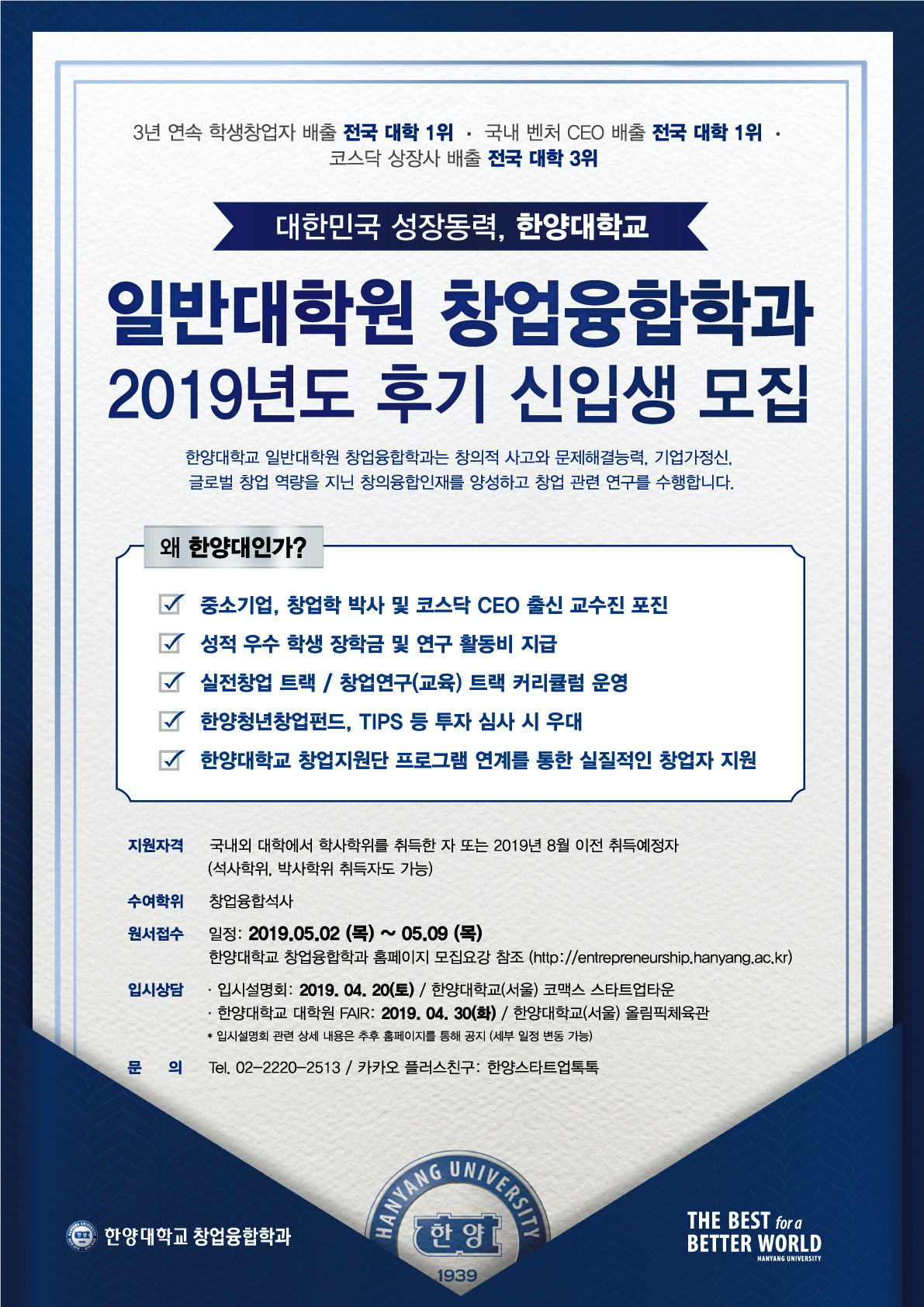 대학원 창업융합학과 지원 관련 상세 내용 보기