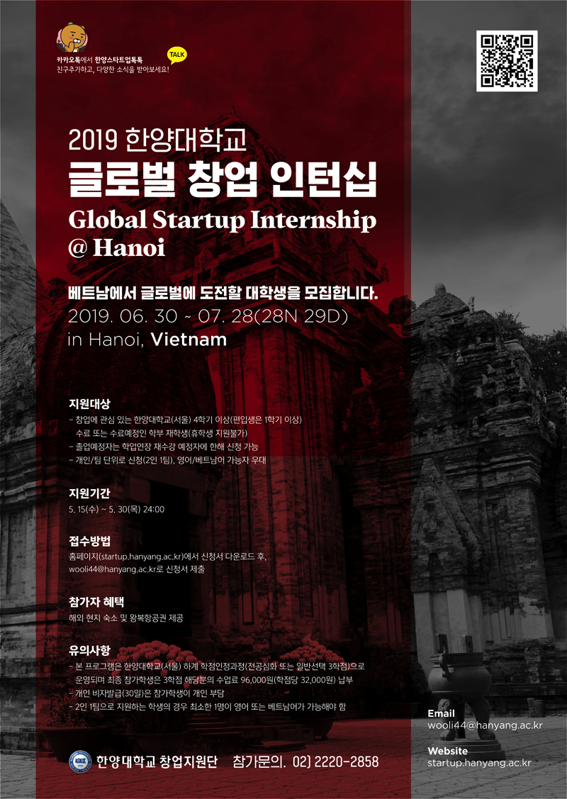 한양대학교 창업지원단, Tel. 02-2220-2858, E-mail. wooli44@hanyang.ac.kr