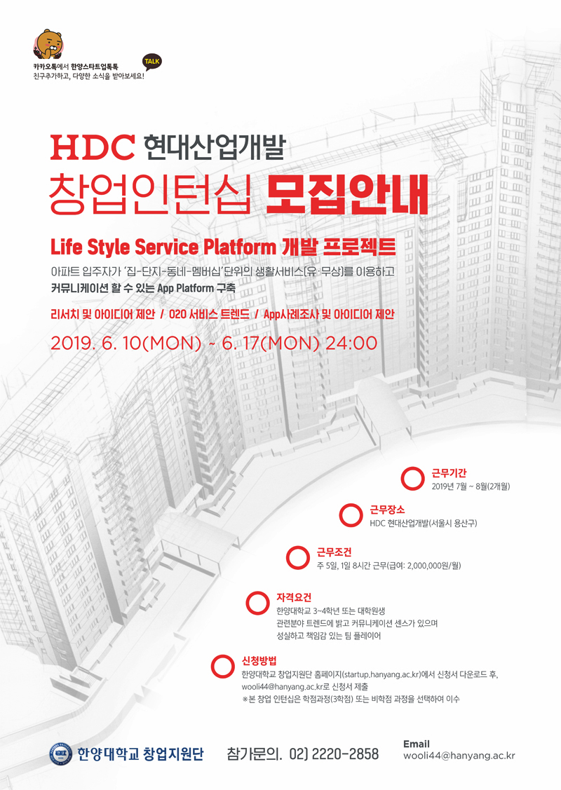 ▸문의: 한양대학교 창업지원단(Tel. 02-2220-2858 / E-mail. wooli44@hanyang.ac.kr)