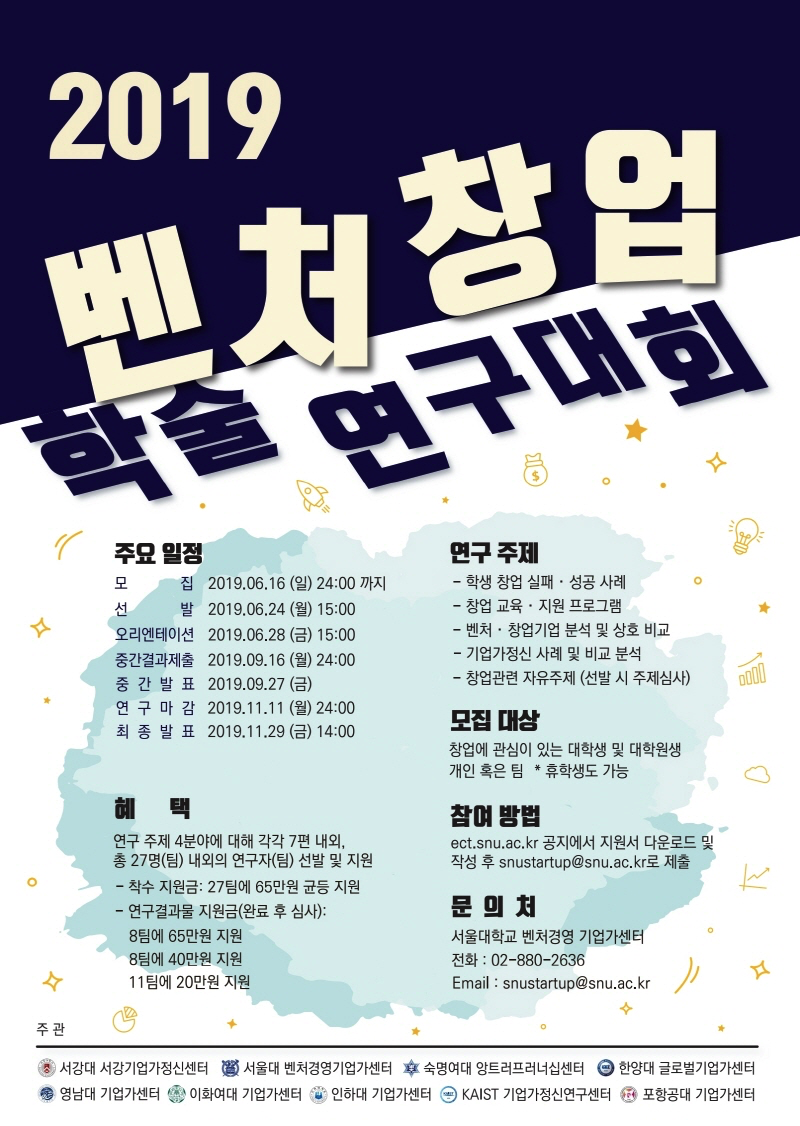 [대학기업가센터] 9개 대학 공동 2019 벤처창업 학술 연구 대회