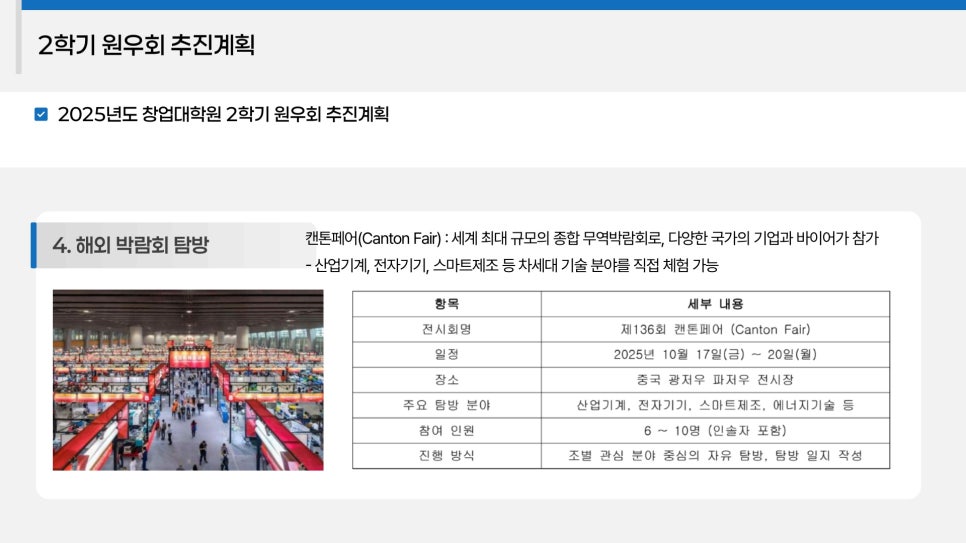 10월에는 글로벌 탐방도 계획되어 있습니다. 해외의 다양한 기업을 보고 직접 보고 배울 수 있는 기회가 될 것이라 기대합니다.