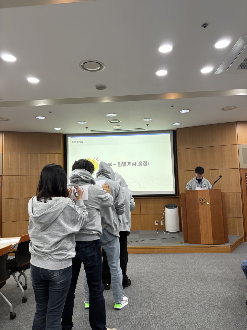 첫 번째 프로그램은 팀별로 진행된 ‘그림 릴레이 게임’으로, 맨 뒤 참가자만 단어를 확인하고